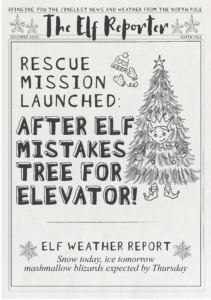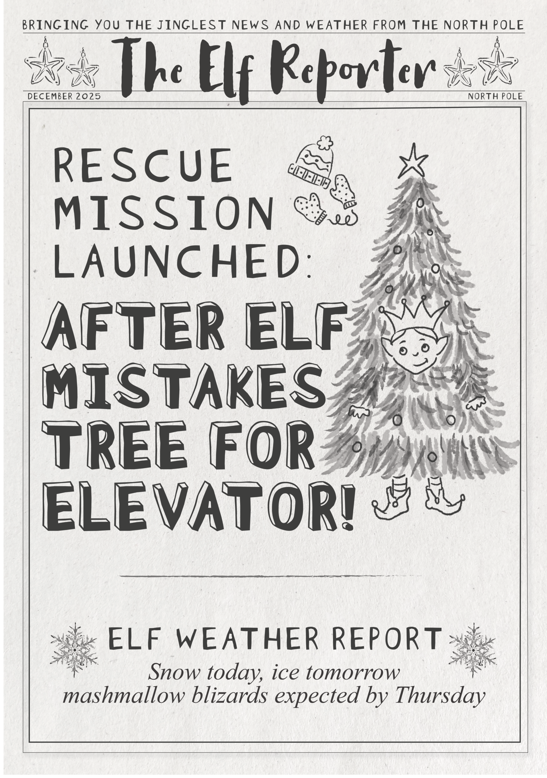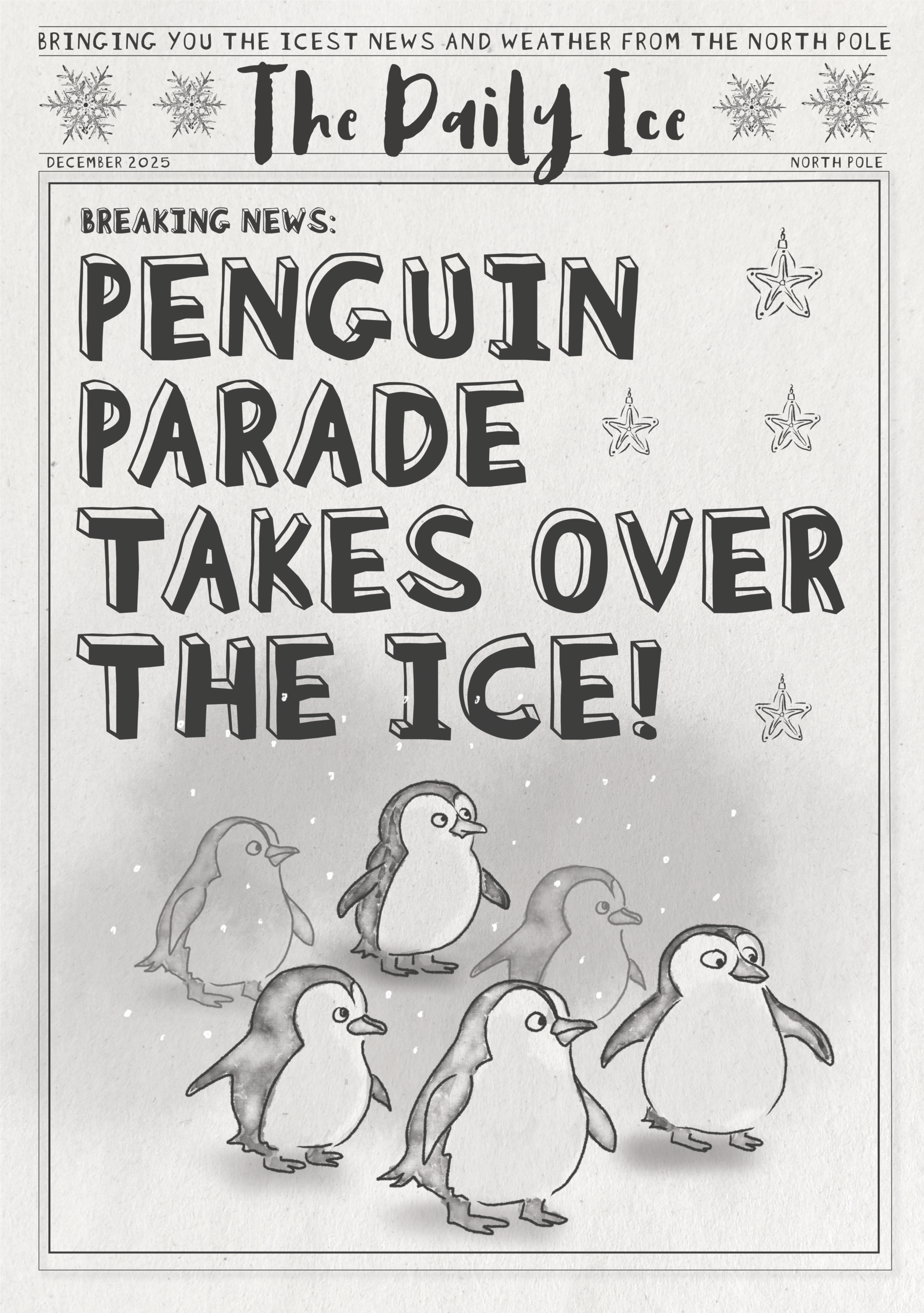 The newspapers were inspired by classic illustrated children’s publications, with a nostalgic feel that nodded to a time when stories were discovered slowly—through drawings, puzzles, and playful headlines.